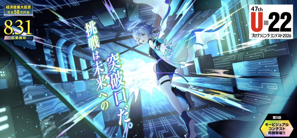 「U-22プログラミング・コンテスト」は、22歳以下の若手プログラマー・クリエイターを対象とした日本有数の作品提出型プログラミングコンテストです。1980年に「U-20プログラミング・コンテスト」としてスタートし、2014年からは「次世代のITプログラマーを応援したい」という企業の想いに支えられ、実行委員会形式で開催されてきました。2025年で47回目を迎える歴史あるイベントです。