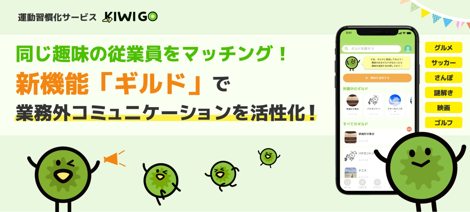 従業員をマッチング!運動習慣化サービス「KIWI GO」が新機能「ギルド(社内サークル)」をリリース。同じ趣味の従業員をつなぎ、コミュニケーションを促進&活動量アップ!