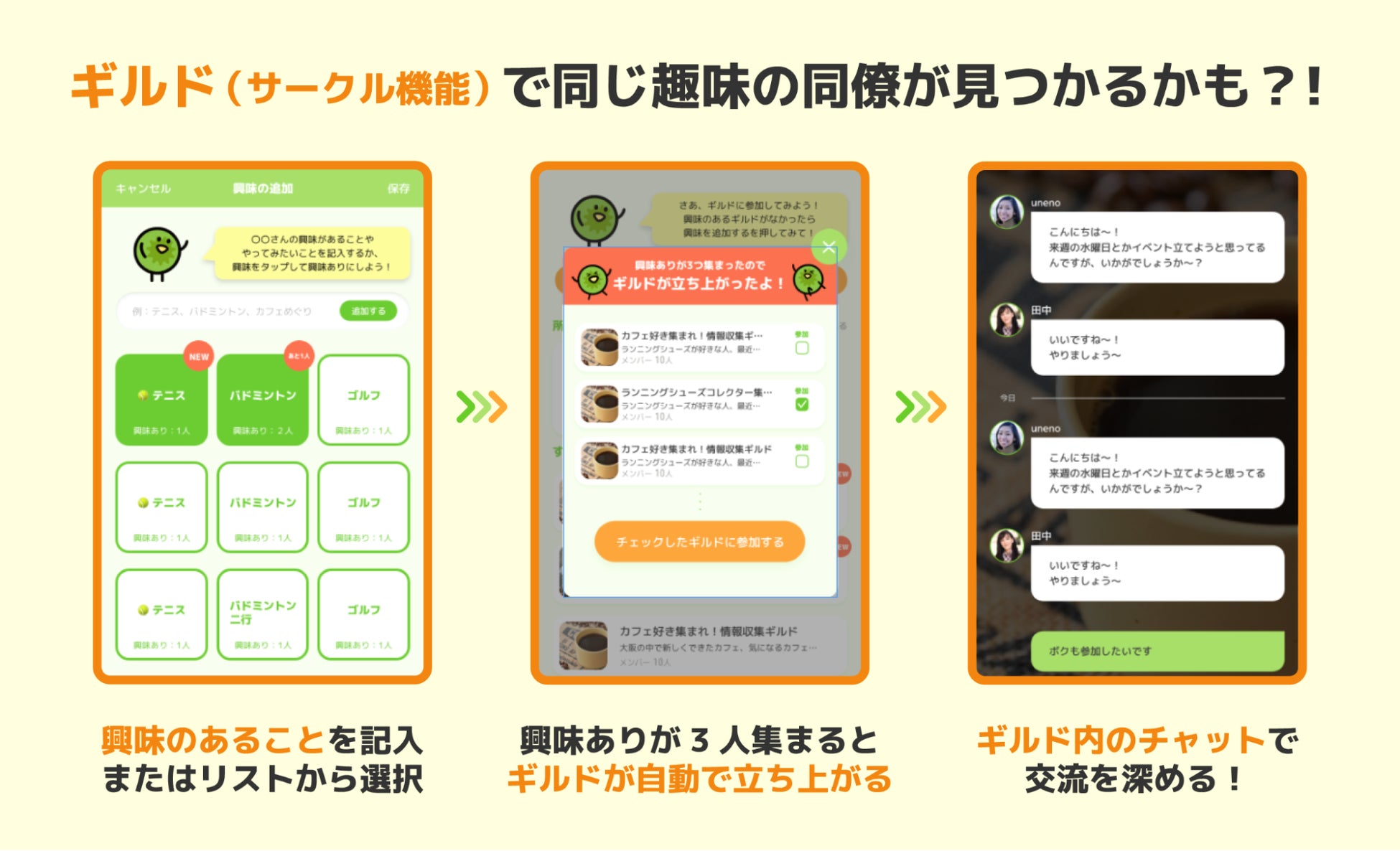 「ギルド(サークル機能)」は、お客様からいただいた「イベントを企画する人が少ないので、いつも総務ばかりが苦労している」という声から生まれた機能です。